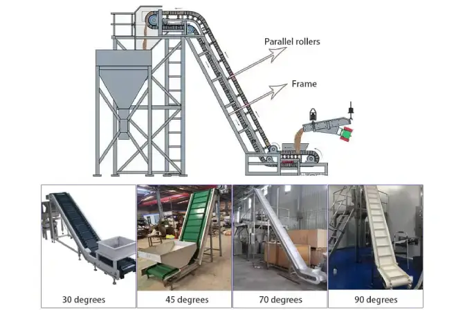 Custom features like cleats and sidewalls enable inclined movement and secure material handling.
